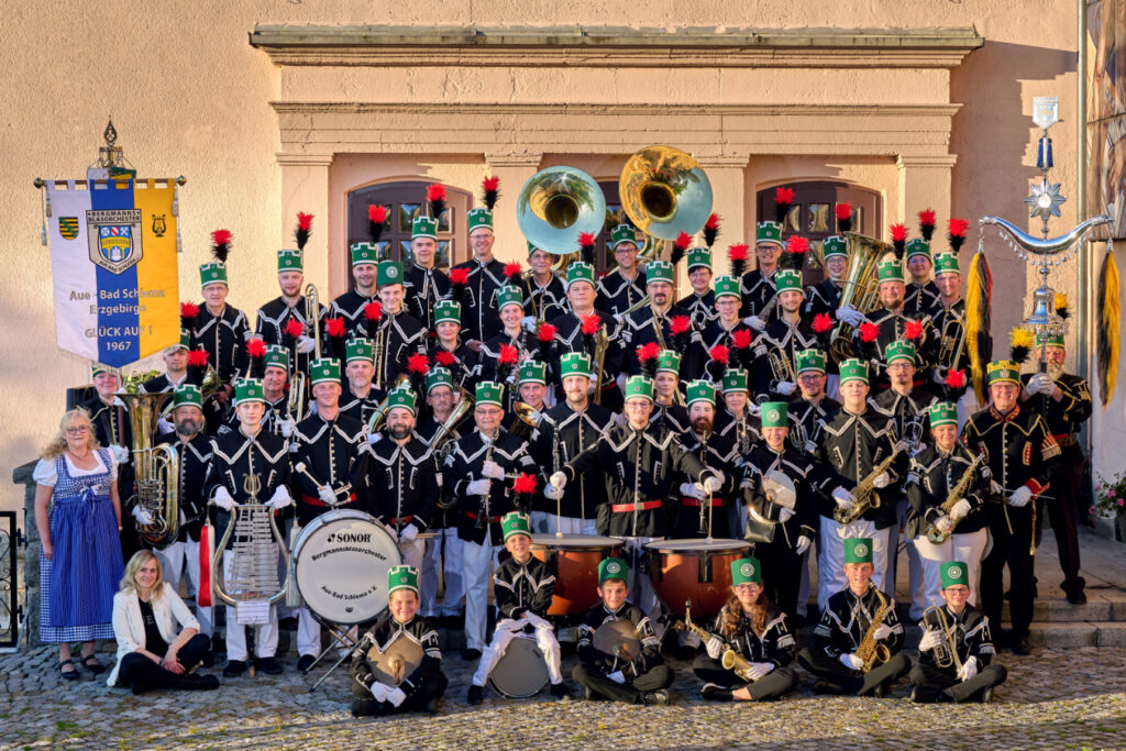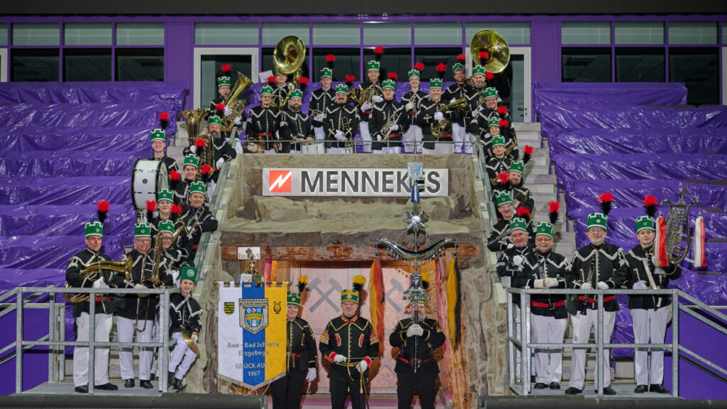 in: historischer Bergmannskleidung (Habit) oder Bühnenauftrittskleidung